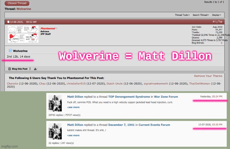 Then it should be easy for you to explain your reasoning just like I explained why I think you and Matt Dillon are the same hypocritical dumbfuck.